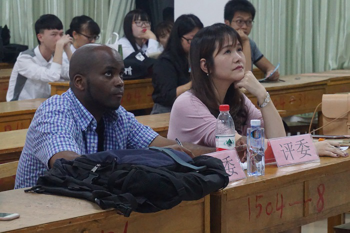 大赛伊始,由外教Julius致词,他表示:“希望大家今晚能好好努力,尽情享受本次比赛。”