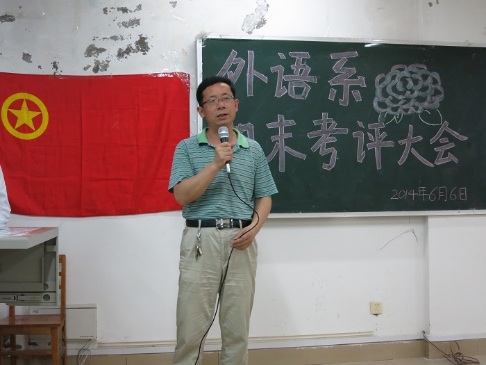 考评会上,首先由系党总支书记周德胜致辞。他对本学期外语系团总支在学风建设、宿舍搬迁、第九届外语文化节等活动中所付出的努力表示充分肯定和由衷的感谢,同时对团组织今后的工作提出了更高的要求和期望。