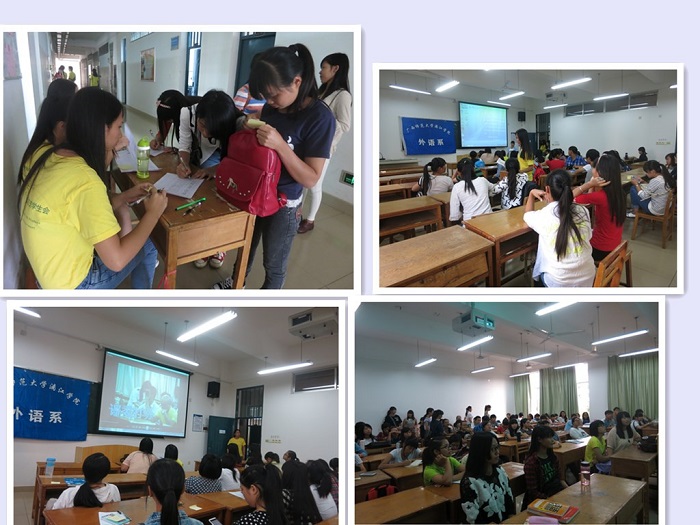 在候场签到教室里,团学成员作为学姐学长热情向在场同学分享自己的经验,并详细介绍每个部门,为大家答疑解惑。现场播放的PPT,外语系特色活动介绍的视频,让同学们更进一步了解外语系大家庭。