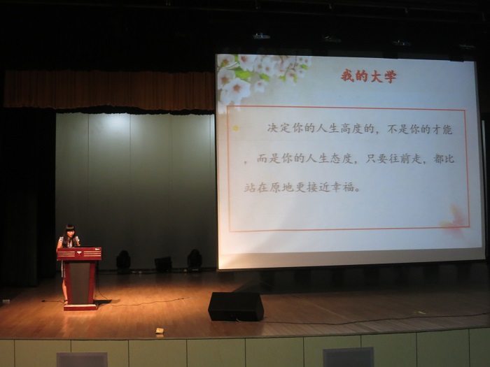 大会在漓江学院院歌——《造就人才的殿堂》积极高亢的歌声中拉开帷幕。何玲主任首先发言,她诚挚的欢迎来自五湖四海的莘莘学子加入外语系大家庭,并向新生们展示了外语系的特色办学和人才培养模式。教师代表赖晓葭老师以自身经历为例,鼓励新生们坚定信念,相信自我,用恒心对待学业,努力闯出自己的一片大学天地。