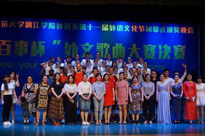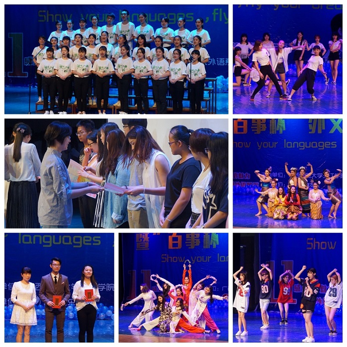 五月的校园,外语声声、异域情浓;五月的校园,歌声飘荡、青春飞扬。在一片载歌载舞中,在一片欢声笑语中,外语系第十一届外语文化节徐徐落下了帷幕。2016年5月23日晚,第十一届外语文化节颁奖晚会暨“百事杯”外文歌曲大赛决赛在我校多功能报告厅举行。到场的嘉宾有院党委副书记、纪委书记、副院长邓志平,院团委书记戈铁胜,学工处韦玉敏,外语系主任何玲,外语系党总支书记陈俊杰,外语系各级教师及蓝鸽集团代表肖璐璐。