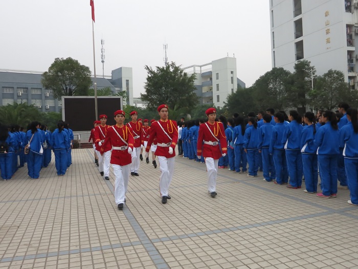 迎着深秋的熹微晨光,10月27日早晨,我系大一大二及大三全体学生在食堂小广场举行了升旗仪式,我系党总支书记陈俊杰以及各年级辅导员参加了此次仪式。