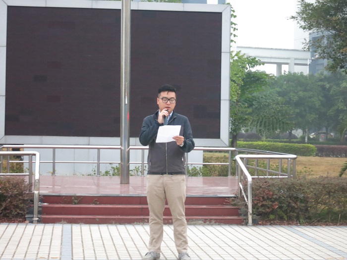 早晨6:10,全体师生集合准备完毕,6;30升旗仪式正式开始。全场肃静,国旗护卫队整齐飒爽向旗杆走去,伴随着《义勇军进行曲》嘹亮的歌声,同学们昂首挺胸,庄严注视着五星红旗缓缓升起。升旗仪式结束后,学生代表李芸娜发表了国旗下的讲话,她分享了自身实习的经历与感悟。告诉同学们热爱自己的选择的路,积极提高自身的专业水平,并学会从实践中学习,从学习中实践,争做适应社会发展的人才。随后,我系党总支书记陈俊杰发表了题为《学以致用,实践为首》的讲话,他表示,在大学这个多彩的平台上,学习时,除了埋头苦干,还需要抬头望路。在广泛汲取知识的同时,同学们要学会自我提问,自我反省思,在探索之中前进,每天收获点滴的进步和改变。他还强调,同学们要重视综合素质,团队合作能力的培养和锻炼,增强适应现代社会日益竞争激烈的能力,学会将在课本上所学的知识运用在客观实际中,通过实践活动进行检验,帮助自己更准确的定位和规划,树立正确的价值观和人生观。
