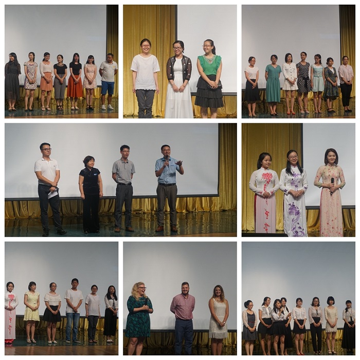 大会高潮阶段,教师团队一一上台介绍,同学们用热烈的掌声表示对教师们的喜爱。其中周燕萍老师、熊慧琴等教师对一些的专业的就业前景做了详细介绍,也对新生送上暖暖的祝福。大会在全体新生的誓词与悠扬的院歌声中落下帷幕。