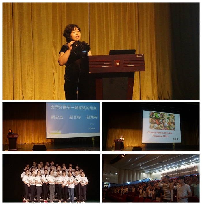 大会最后,何玲主任做了最后总结,鼓励同学们勇于尝试,迎接新的挑战。她以《大学只是另一场旅途的起点》的为题展开主题发言,开启了外语系2016级新生入学导航系列工作。