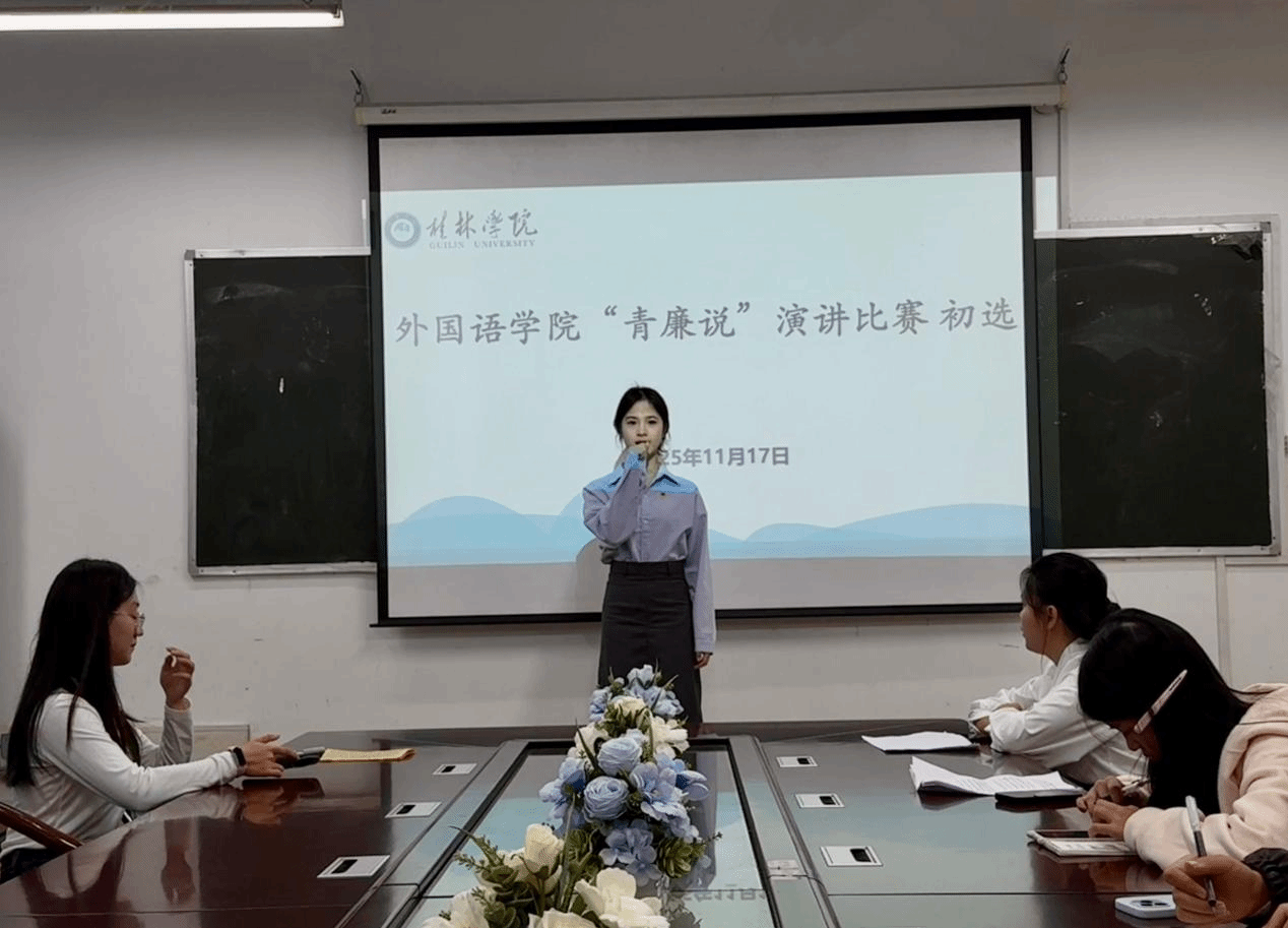 为深入贯彻《新时代廉洁文化建设三年行动计划(2025—2027年)》部署要求,扎实推进校园廉洁文化建设,引导青年学生厚植廉洁自律意识,11月17日,外国语学院“青廉说”学生演讲比赛在学院2108会议室圆满落幕。
