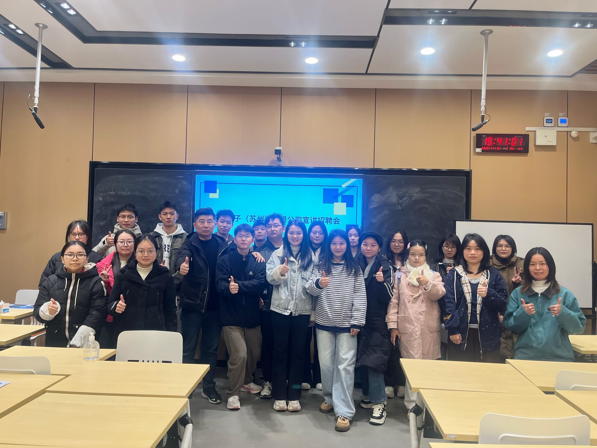 11月19日,外国语学院联合建滔集团扬宣电子(苏州)有限公司成功举办越南语专业专场招聘宣讲会。建滔集团人事部主任蒋传利莅临现场主讲,学院党总支副书记、越南语教研室主任与全体越南语专业学子共同参与,这场精准对接的招聘活动为校企合作搭建起就业桥梁,为学子职业发展注入强劲动力。