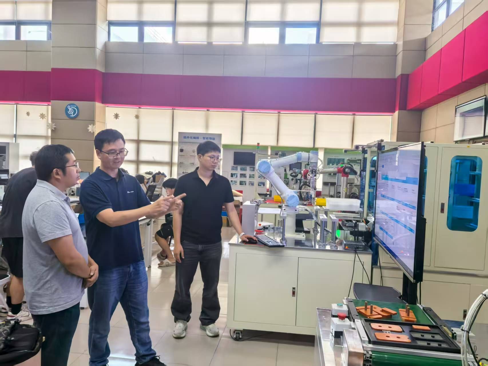 广东工业大学计算机学院副院长朱鉴、自动化学院王涛副教授等陪同调研团队参观了工业软件实验室、自动化学院多个实验教学平台。朱鉴副院长详细介绍了广工在工业软件研发、实验室建设以及跨学科协同育人方面的实践经验。双方围绕工业软件相关课程设置、项目驱动教学方法的实施、校企协同育人机制等具体内容展开了热烈讨论。
