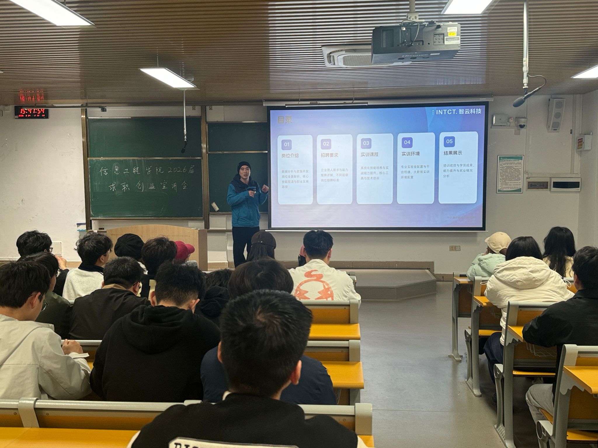 3月24日下午,信息工程学院在至善楼1214教室顺利开展2026届毕业生求职创业宣讲会,特邀桂林智云迅科大数据技术有限公司总经理韦化,围绕“大数据商业智能技术”项目开展专题分享。信息工程学院学生工作副书记、2026届毕业班辅导员以及2026届大数据、软件工程、物联网等相关专业毕业生参加此次宣讲会。