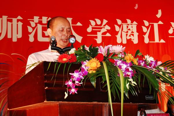 广西师范大学漓江学院副董事长、院长蔡昌卓在开学典礼上讲话。在谈到如何立足新起点,迎接新挑战,争创新成绩时,蔡院长给新生们提出了五点建议。第一,树立品牌意识,打造学院形象,为学院持续发展奠基。同学们必须牢记“向学、向善、自律、自强”的校训,牢记漓江学院的名声和品牌是成千上万漓院人的心血所铸,用实际行动为漓院增光添彩。第二,先学会做人,再学会做学问,先成人再成才。第三,明确目标,珍惜时间,主动学习。学子们应该珍惜大学四年的学习时光,把成才作为自己的人生目标,充分利用学院提供的一切学习资源,刻苦钻研,博学深思,努力把自己培养成为一名能够适应社会的实用性人才。第四,学好专业,全面发展,完善自我。第五,深入了解国情,明确历史责任。今年恰逢新中国成立60周年,蔡院长希望同学们能充分利用学员创造的良好条件,积极吸收世界各国高等教育的营养,胸怀天下,服务祖国。