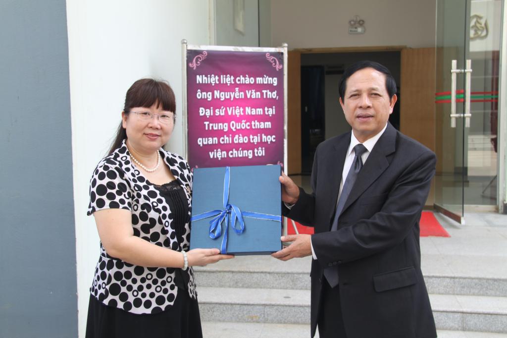 越南大使向我院教师代表赠送礼品