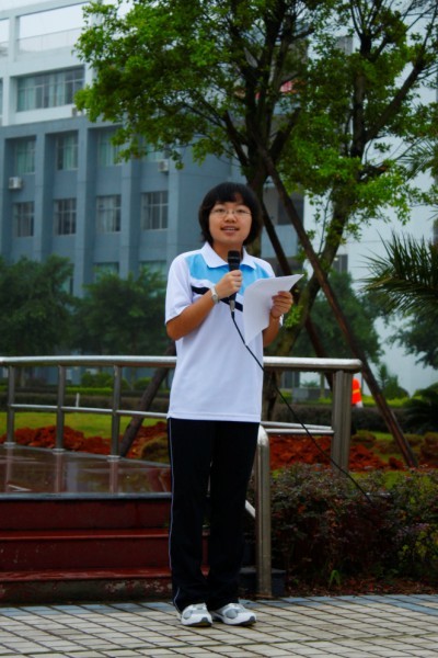 来自理学系09数学与应用数学专业的何启凤以《收获与成长》为题进行国旗下的演讲,分享自己成功的经验,并鼓励同学们积极向善,自律自强,创造自己美好的未来。