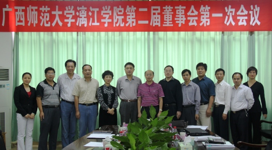 2009年10月27日,漓江学院第二届董事会第一次会议在学院1301会议室召开。中国联合生物技术有限公司派出董事郑齐全、韦忠旦、韦铧、吴环、广西师范大学派出董事蔡昌卓、丁静、梁启谈出席了会议,学院领导班子全体成员列席了会议。会议由董事长郑齐全主持。